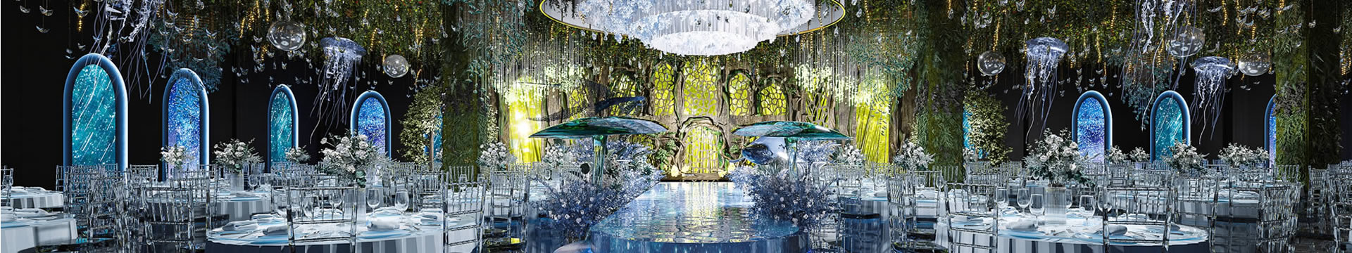 福山居易蓝色调婚礼堂效果展示
